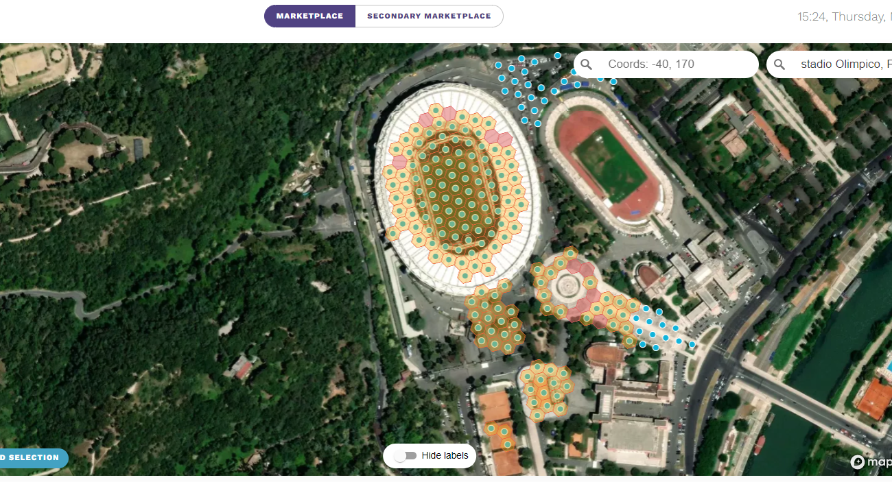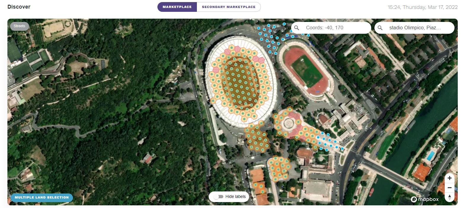 Vai sul “marketplace” e scegli il luogo dove comprare la tua land a forma di esagono.