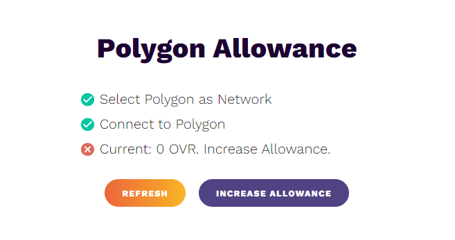 Premi su “increase allowance” per confermare la transazione e abilitare il tuo account a spendere OVR.