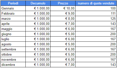 | Trimestre | Valore per Quota (€) | Quote da Vendere | Importo Ottenuto (€) |