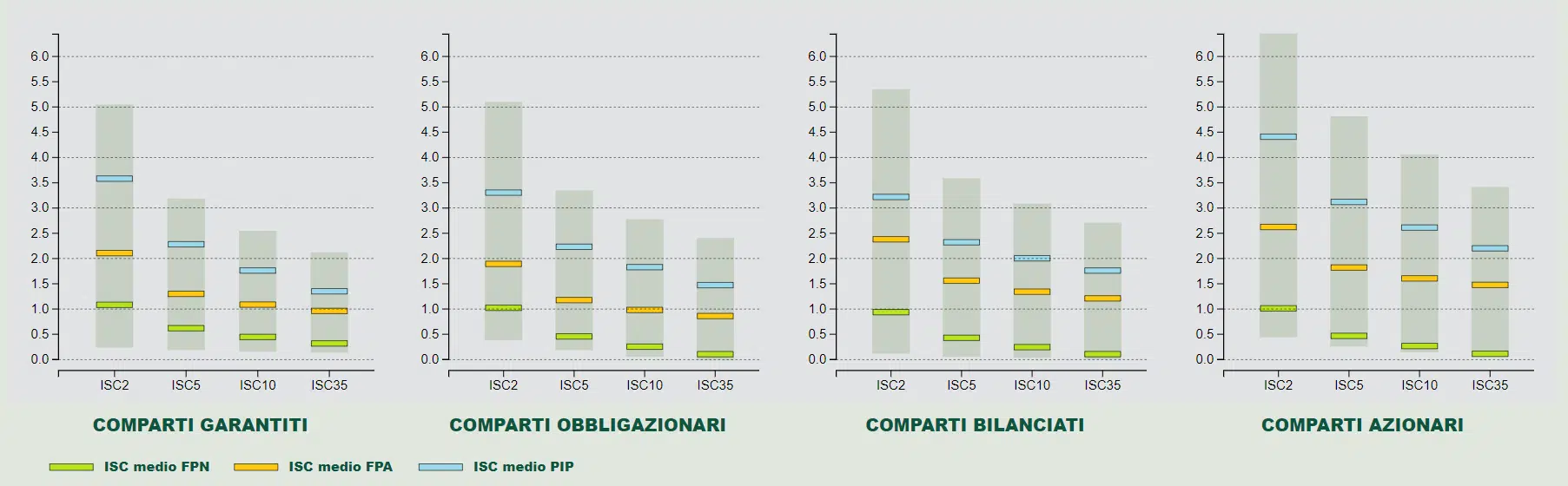 Gli altri comparti sono azionario, bilanciato e conservativo/obbligazionario. Il primo visto che investe in strumenti più volatili richiede un costo maggiore.