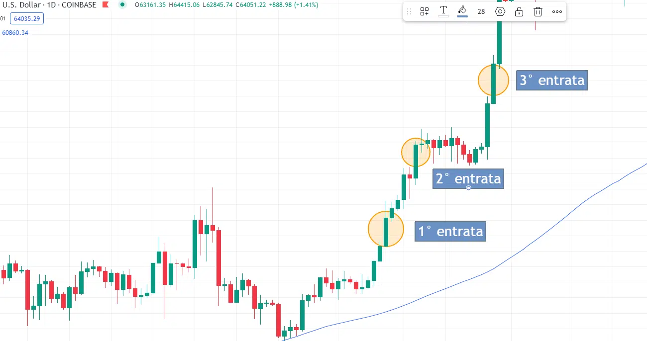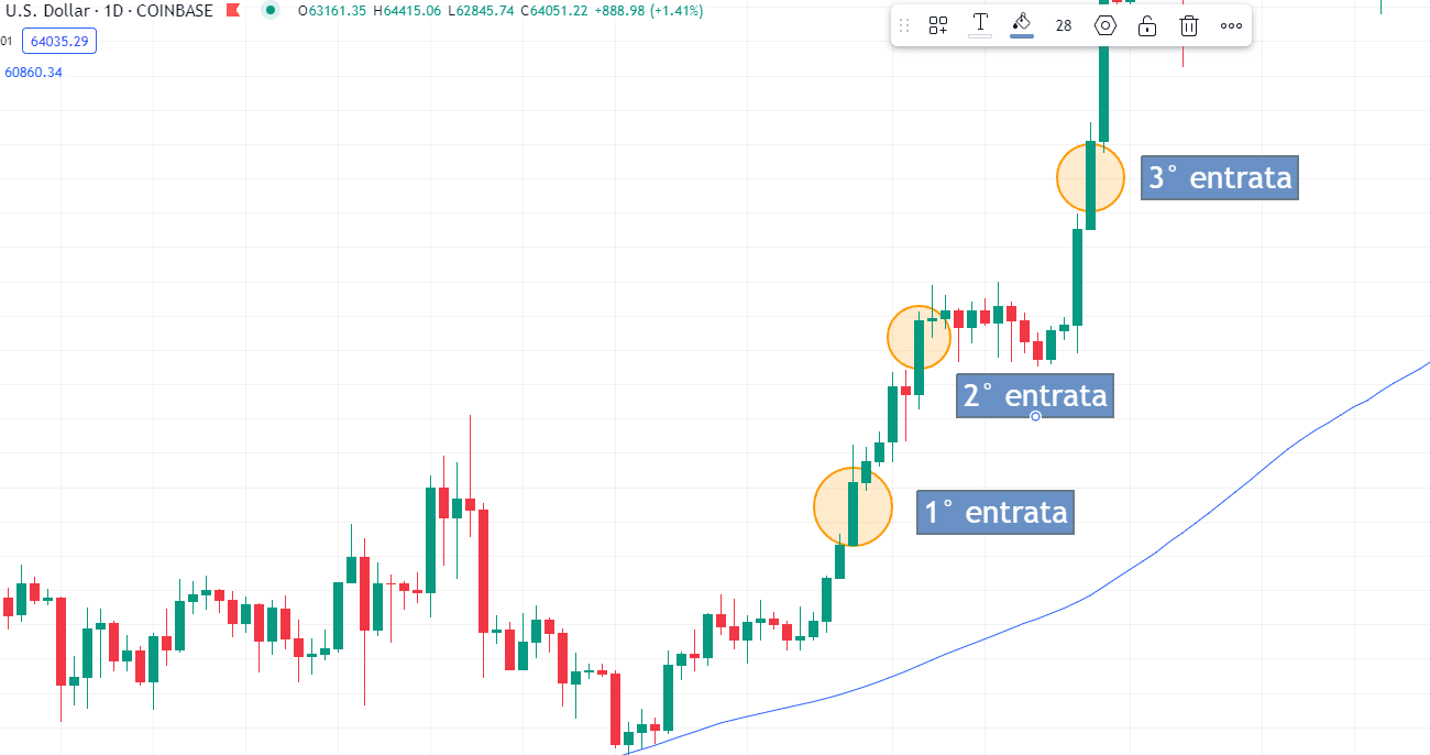 In questo articolo faremo riferimento a piramidare operazioni long, ma gli stessi ragionamenti possono essere fatti in piramidazioni short.