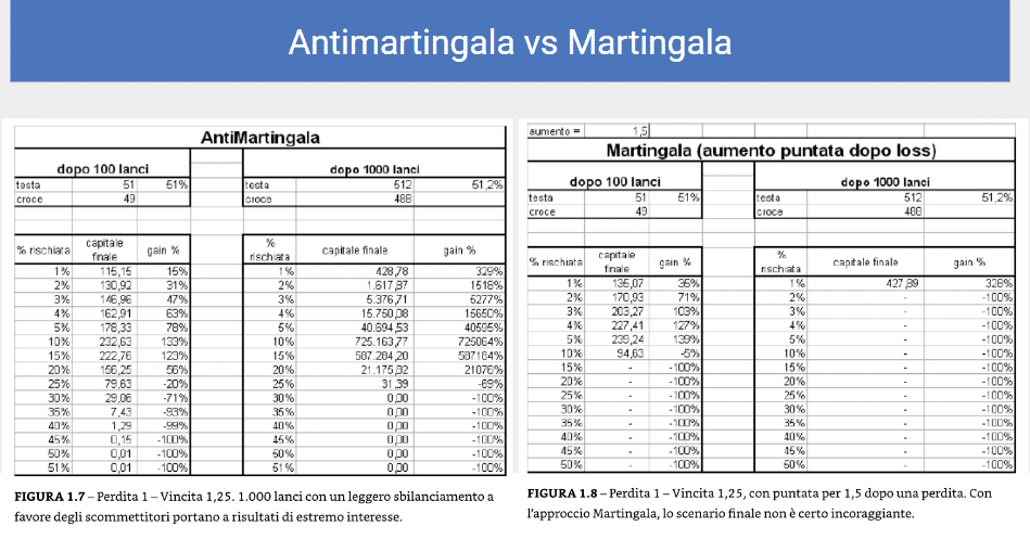 Come si può notare dai risultati dell’immagine precedente la martingala è una tecnica del tutto perdente, e non andrebbe mai utilizzata.
