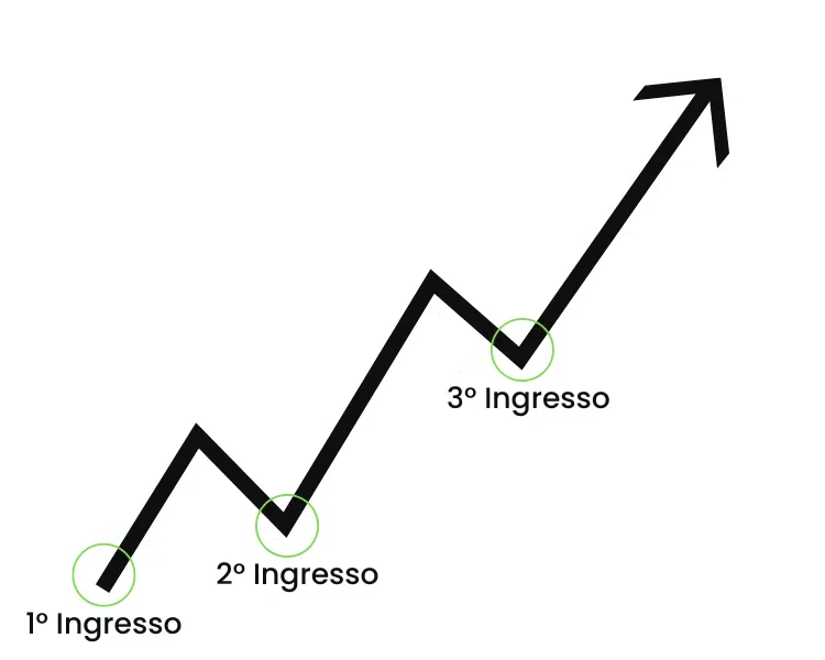 Il concetto di base è semplice: invece di investire un grande quantitativo di capitale in una sola volta (PIC), il trader investe piccole quantità che aumentano man mano che l’investimento iniziale mostra un profitto.