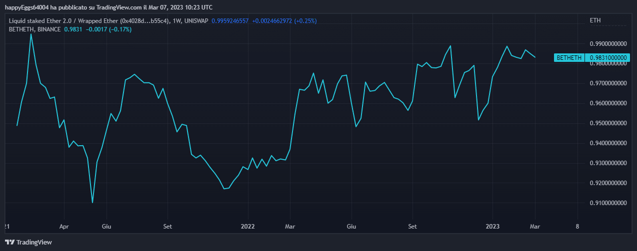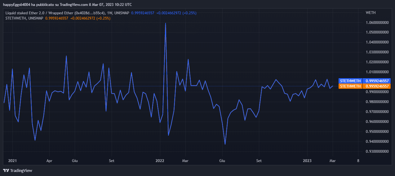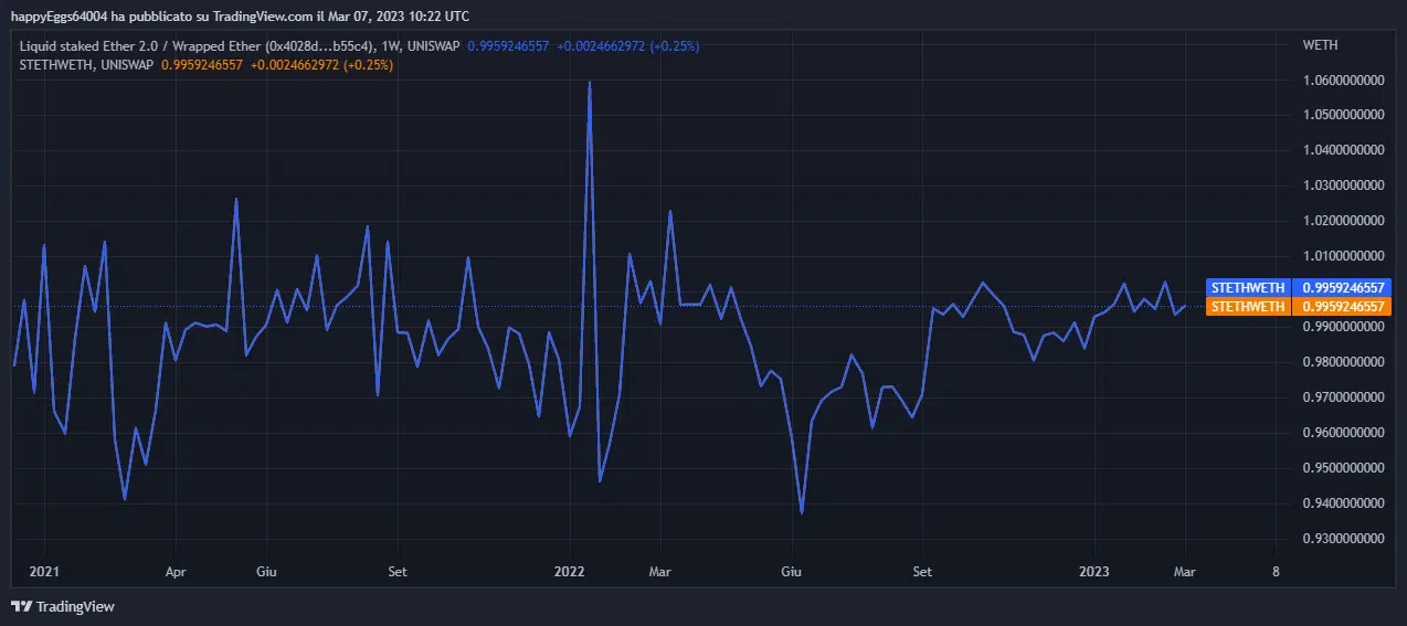 Come puoi vedere dai grafici, la versione tokernizzata si sta avvicinando alla parità perchè il rischio di detenere ether in stake sta diminuendo man mano ci si avvicina alla data fatidica.