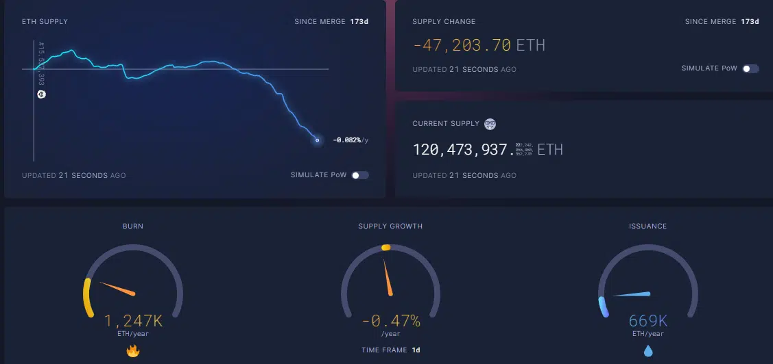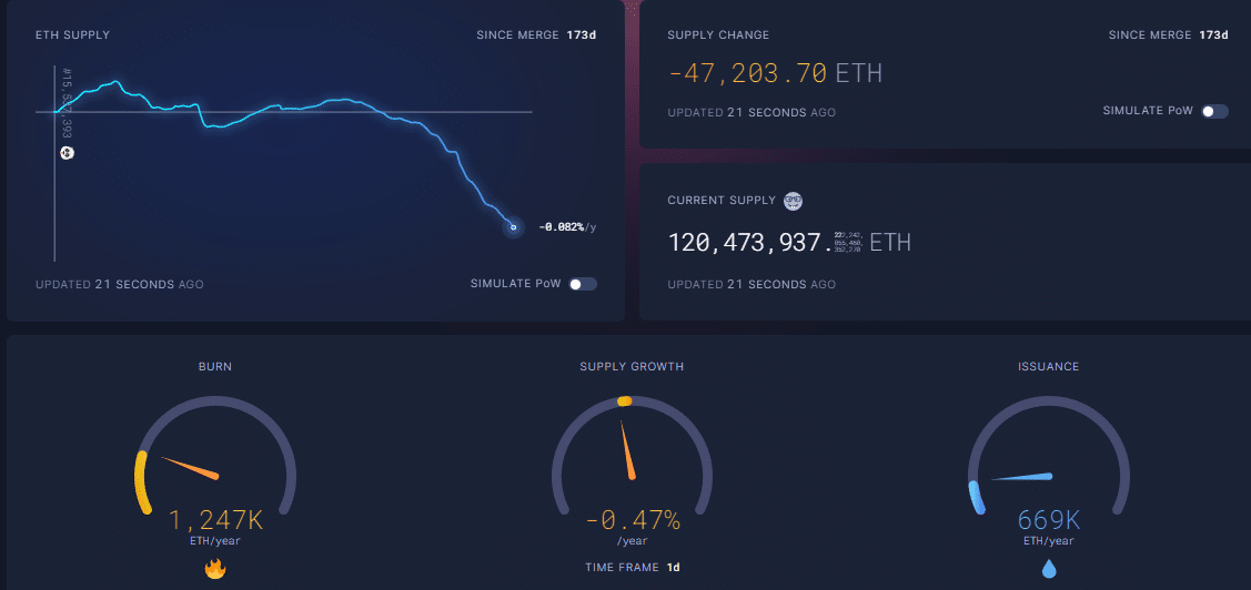 - avrà un emissione e un circolante controllato, che consente un aumento del valore intrinseco del token, in quanto ne vengono prodotti meno di quanti ne sono bruciati e quindi la supply di ether si sta riducendo nel tempo (burn > issuance = supply growth negativa).