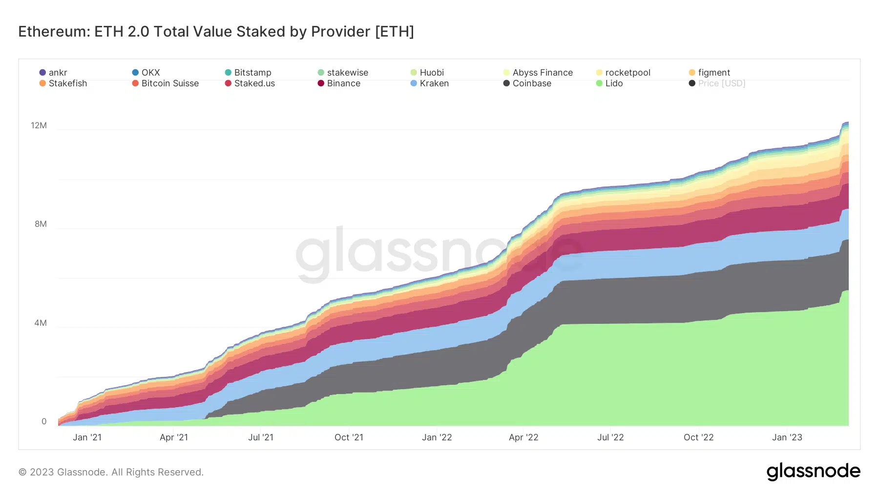 Gli ETH messi in staking in base al provider sono i seguenti: