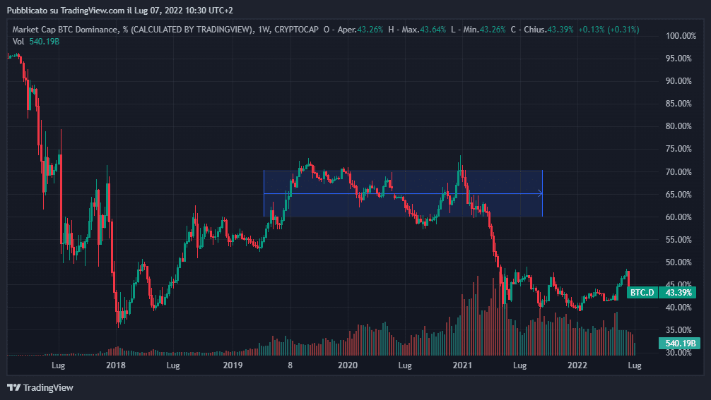 Se la dominance dovesse tornare a valori superiori al 60% allora sarebbe il momento di puntare di nuovo sulle altcoin.