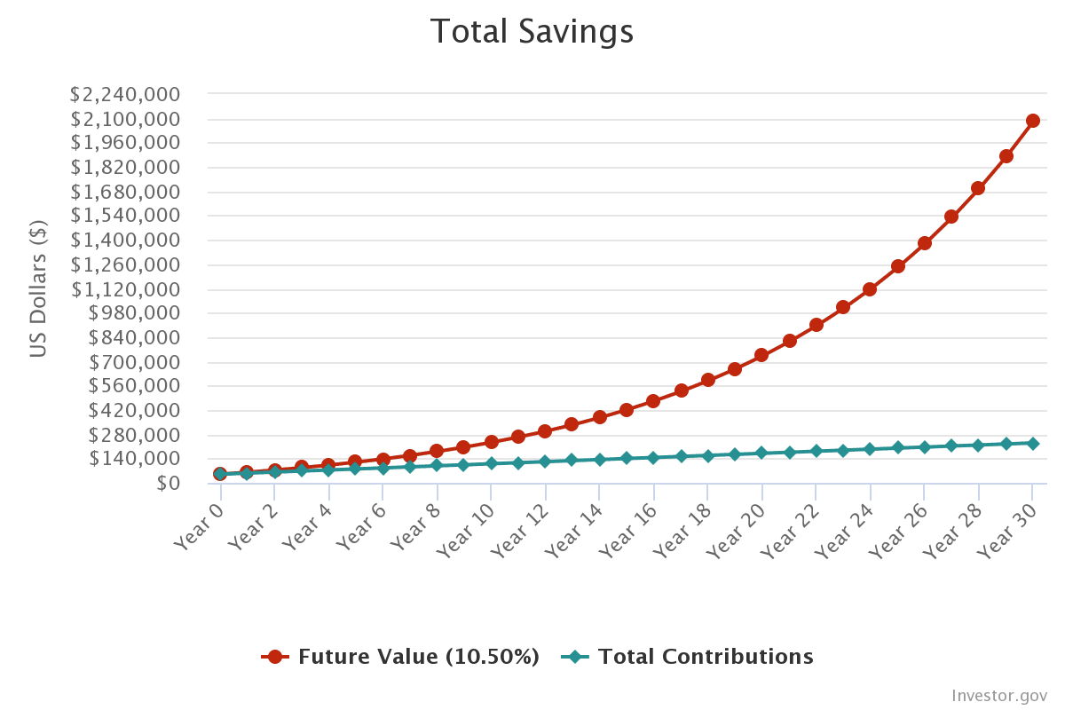 1) Creiamo qualche scenario ipotizzando un investimento a 30 anni con un tasso annuo di crescita del 10,50%.