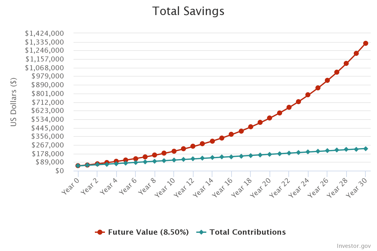 2) Creiamo qualche scenario ipotizzando un investimento a 30 anni con un tasso annuo di crescita del 8,50%.