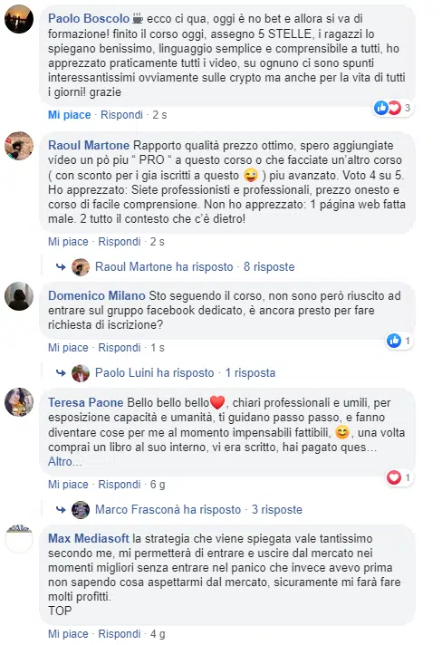 Inizieremo con prove reali di performance a persone a cui abbiamo rivoluzionato la vita (su crypto è ovvio che le testimonianze non siano firmate con nome e cognome).