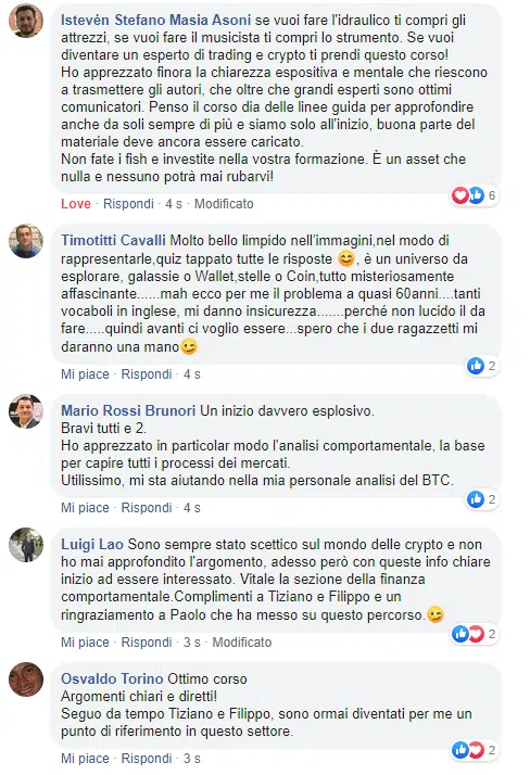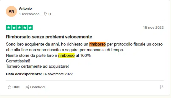 Più in basso troverai delle recensioni su Trustpilot di alcuni dei nostri percorsi (lì anche volendo non abbiamo modo di moderare/cancellare nulla).