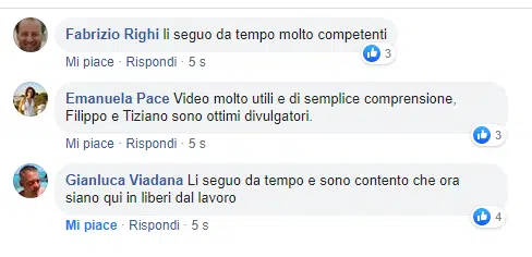 Poi di seguito commenti con nome e cognome da facebook.