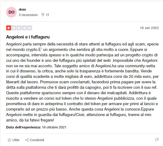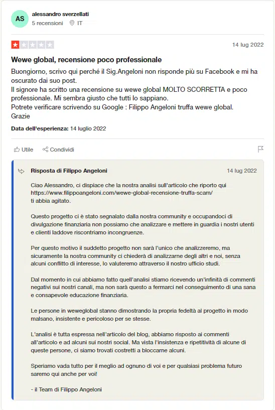 Altre recensioni negative le puoi trovare su Trustpilot, non si riferiscono però a Filippo Angeloni, ne ai nostri prodotti e neanche alle nostre consulenze…