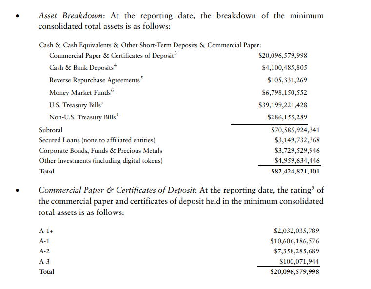 Queste sono le principali voci delle riserve usate come collaterale per USDT.