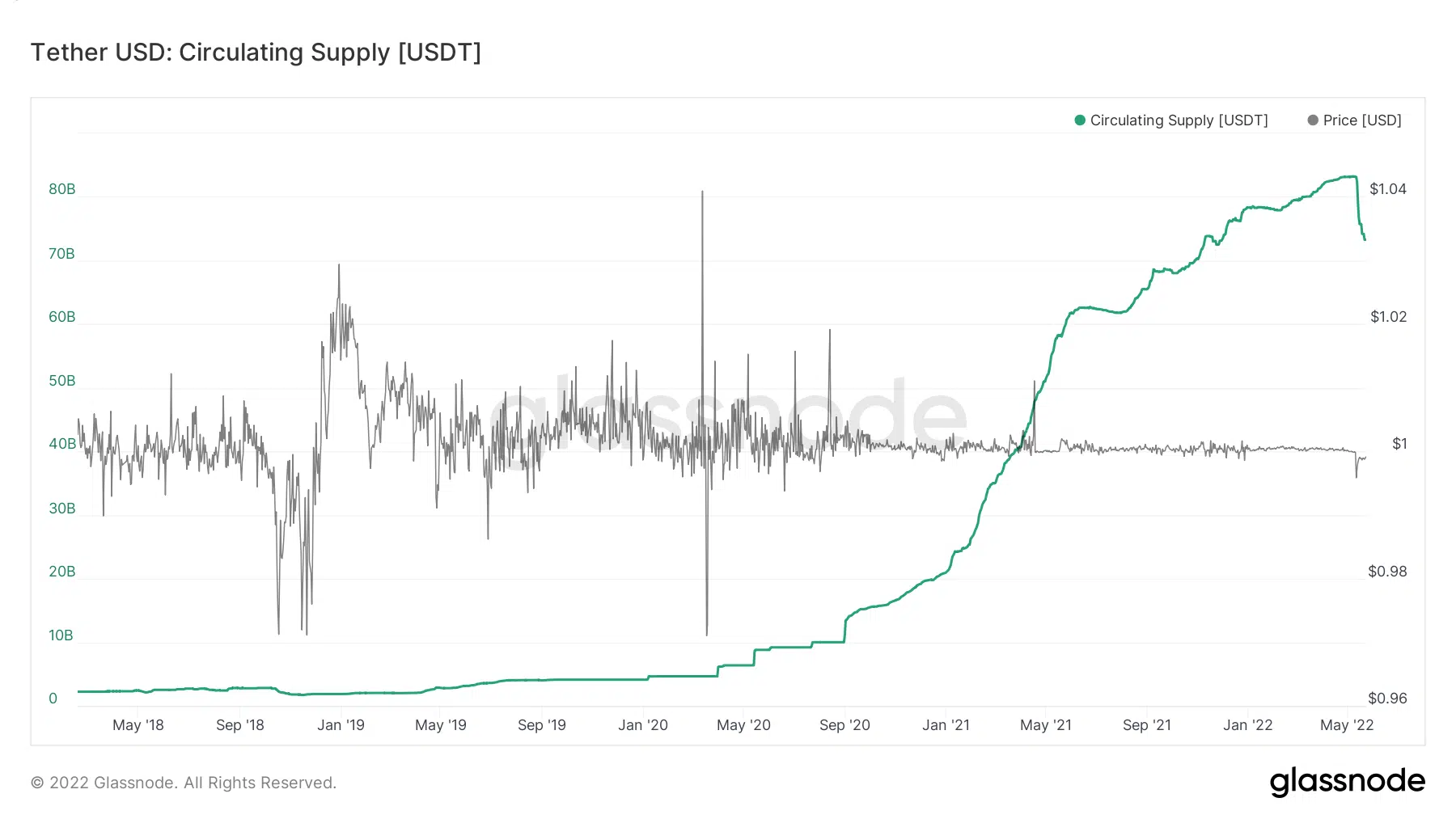 Fornitura circolante di Tether (USDT) – Fonte Glassnode