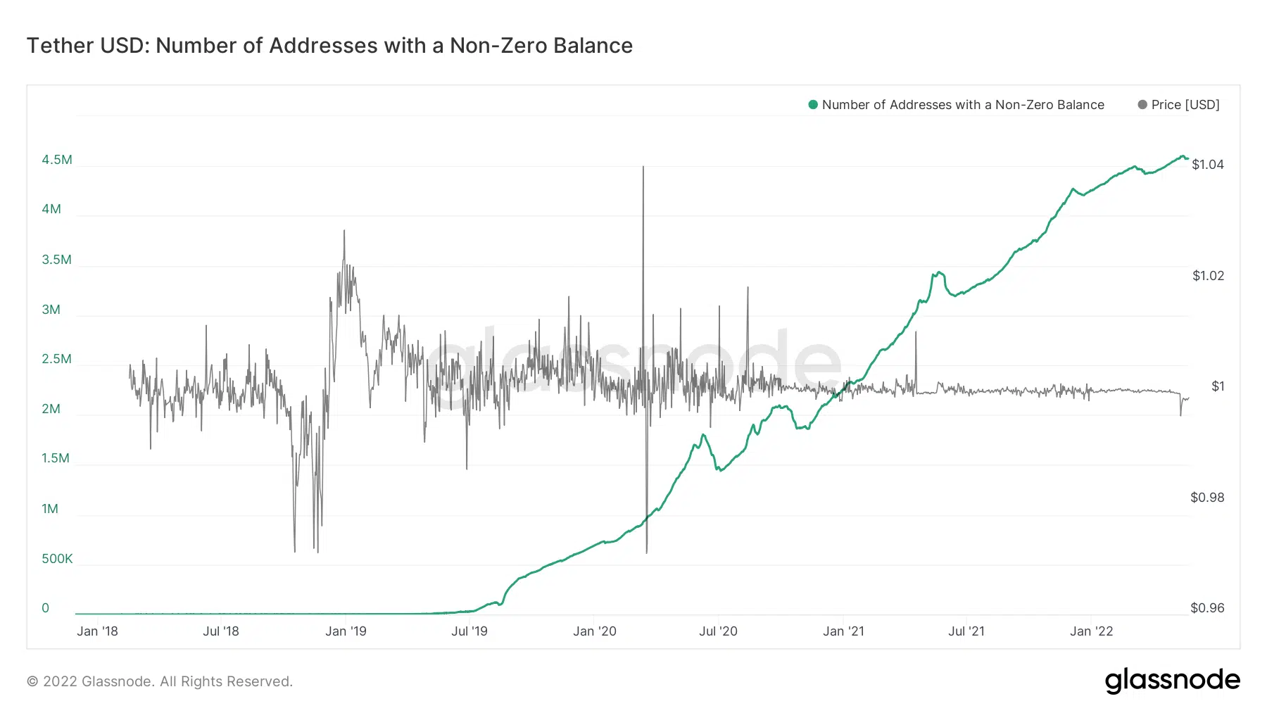 Numero di indirizzi con saldo positivo di Tether (USDT) – Fonte Glassnode