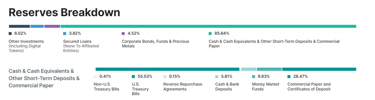 Queste sono le principali voci delle riserve usate come collaterale per USDT.