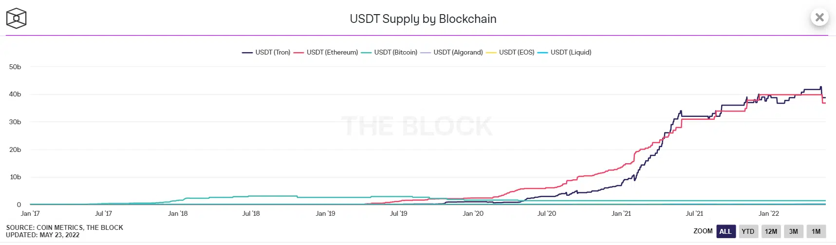 Supply di USDT sulle diverse blockchain – Fonte TheBlock