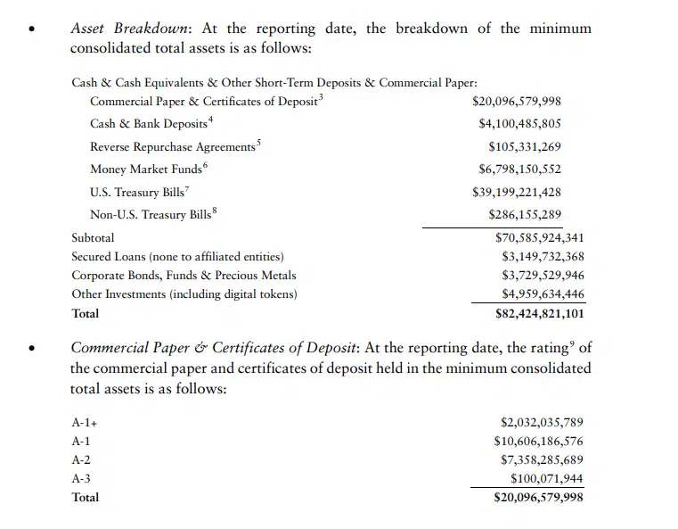 Ora cerchiamo di capire nel dettaglio quali sono i principali asset che la società di Tether ha in portafoglio: