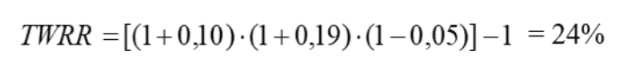 A questo punto, per calcolare il TWRR occorre effettuare la media geometrica (non aritmetica) dei rendimenti dei sotto-periodi: