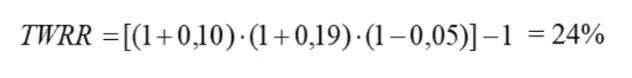 A questo punto, per calcolare il TWRR occorre effettuare la media geometrica (non aritmetica) dei rendimenti dei sotto-periodi: