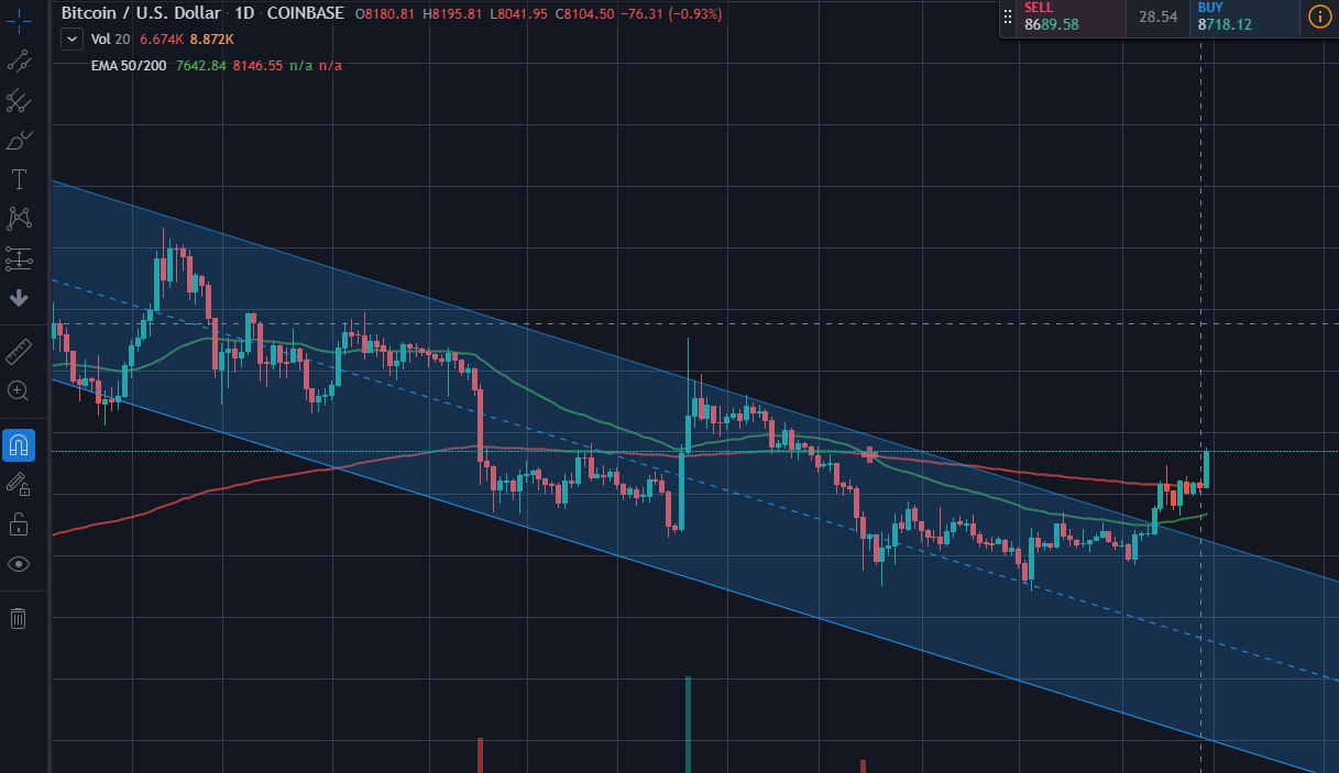 Una rottura in chiusura della trendline è chiaramente più significativa di una rottura intraday. Ma a volte (soprattutto nel trading cripto) una rottura in chiusura (quindi non intraday) non è sufficiente per invalidare una trendline.