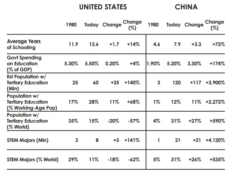 I dati sull’istruzione se confrontati con gli Stati Uniti sono ancora più eclatanti.