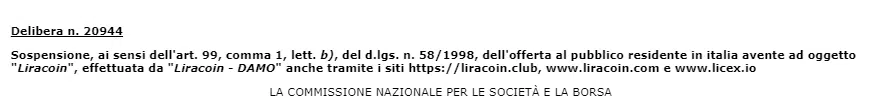 La Consob non si è ancora espressa su WEWE e non lo ha ancora definito truffa o scam.