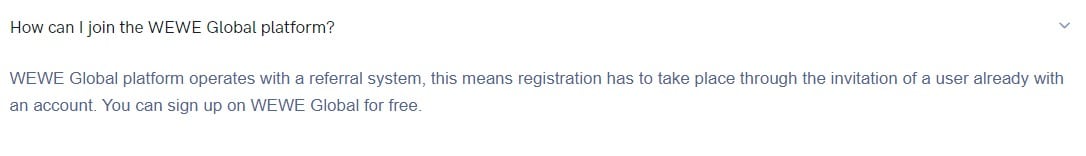 “Puoi ottenere WEWE acquistando prodotti, utilizzando i servizi WEWE Global e dando il tuo contributo alla comunità tramite il referral link.”